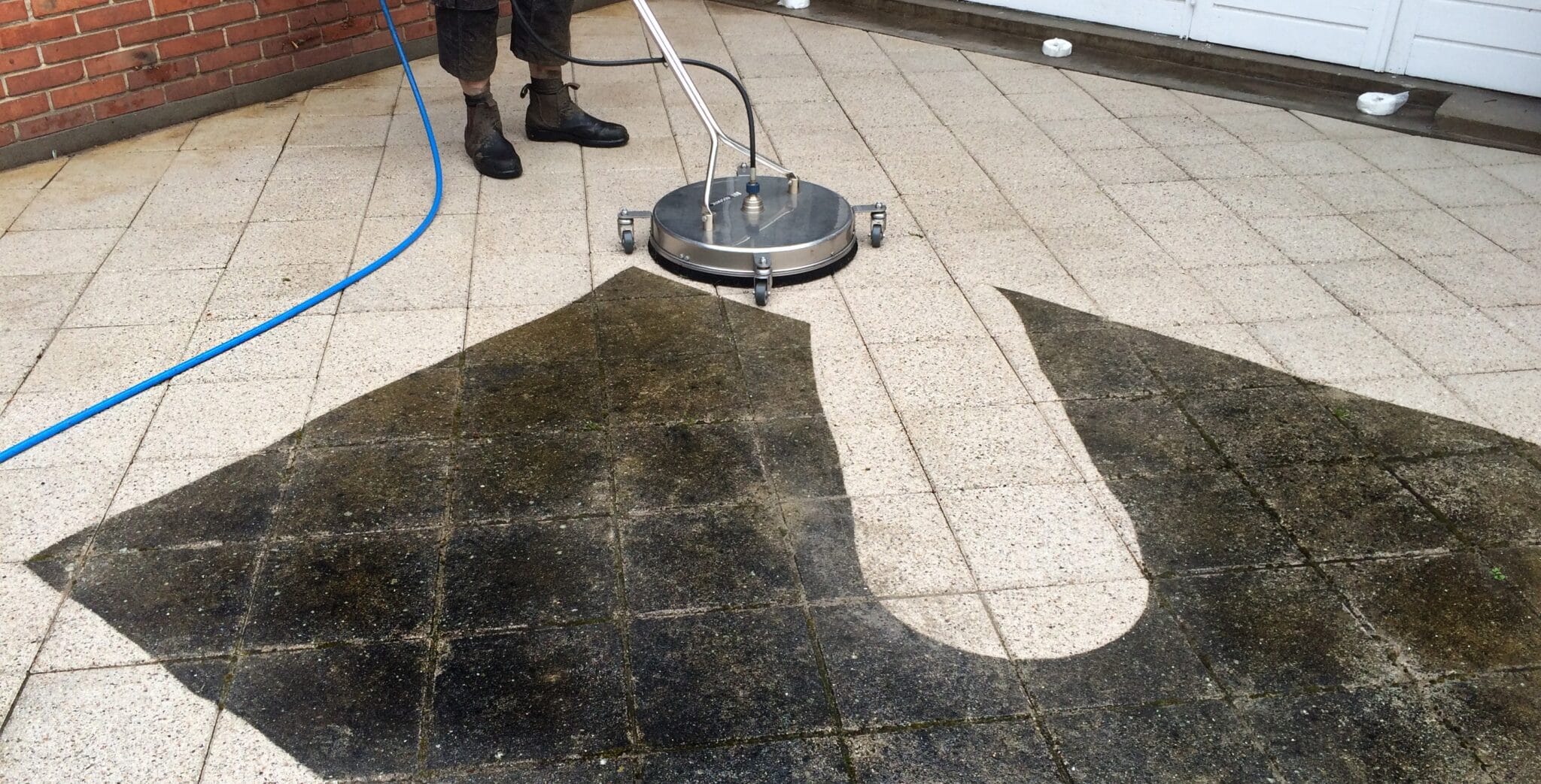 Vi renser fliserne med varmt rent vand, med den optimale mængde og tryk, som efterlader fliserne 100 % rene og fri for mos, ukrudt og andet snavs eller skidt. Derefter skyller vi alle fliserne grundigt, ligesom facader, vinduer, buske mm. også bliver skyllet rent.